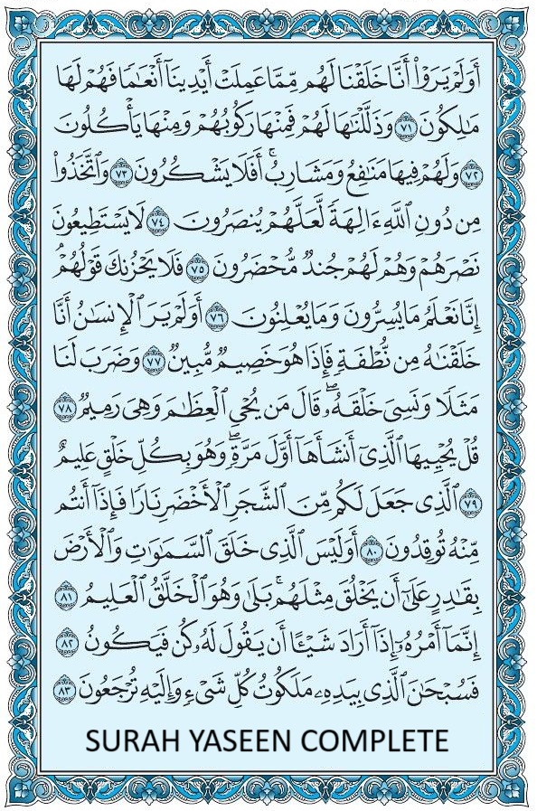 These are only a few of the countless signs that Allah has mentioned in the Qur’an for those who reflect. Surah Yaseen, when read with an open heart and understanding, truly strengthens one’s faith and love for the Creator.